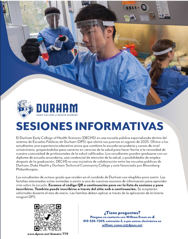 Sesiones Informativas Durham Early College of Health Sciences