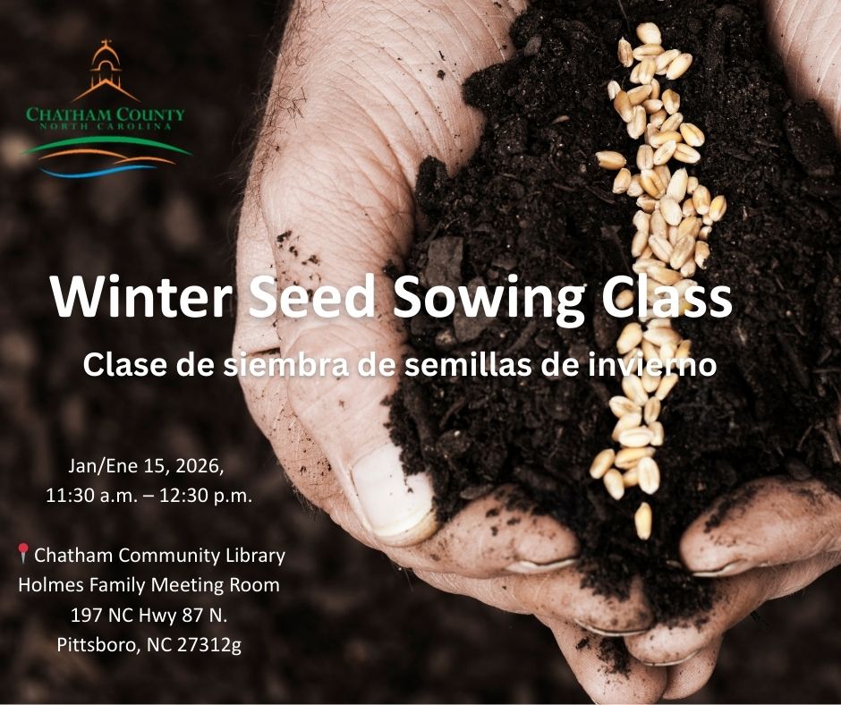 PITTSBORO, NC— La Biblioteca Comunitaria de Chatham ofrecerá una clase de Siembra de Semillas en Invierno el jueves 15 de enero de 2026, en la Sala de Reuniones Holmes Family. Este programa es gratuito y está abierto al público.