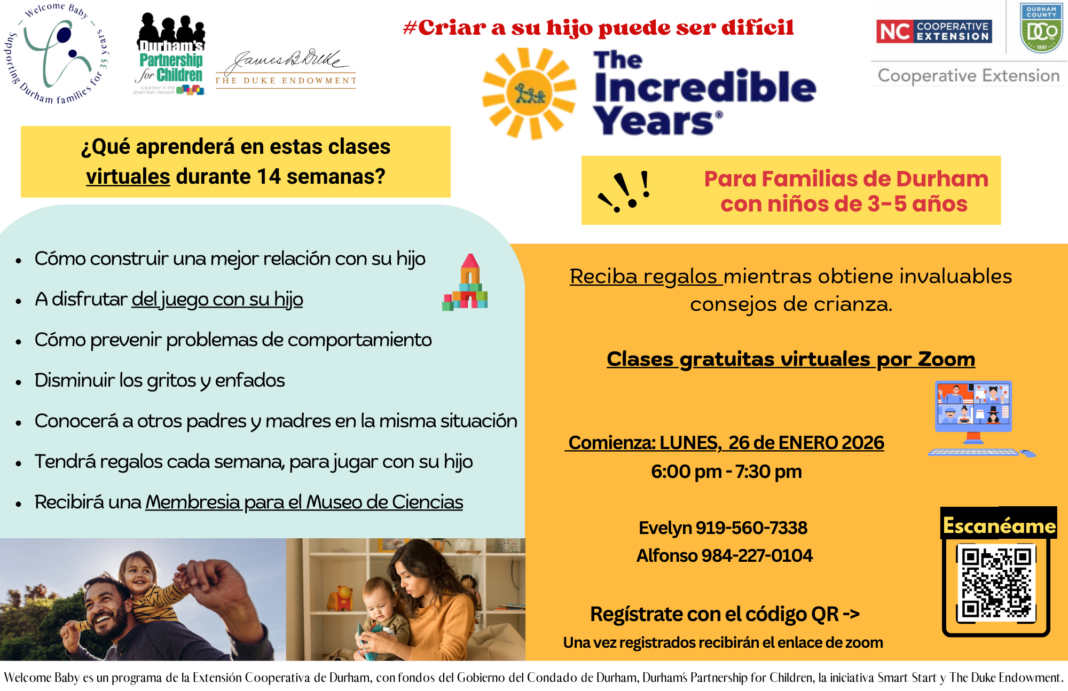Los Años Increíbles – Para familias con niños de 3 a 5 años. Regístrese aquí: https://forms.gle/PHc7DJc3dBakFF4s8
